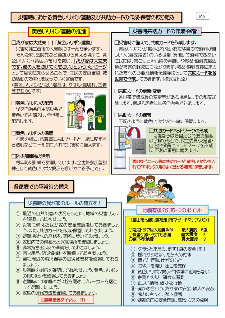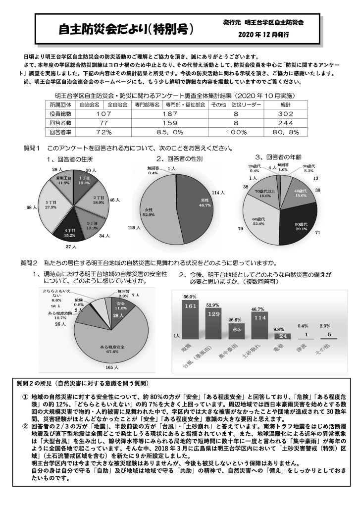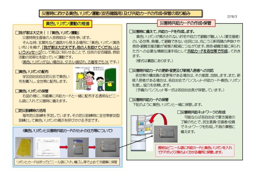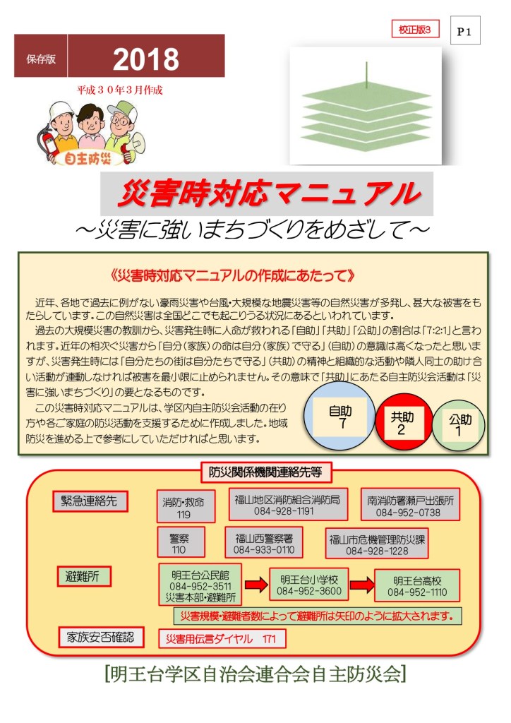 災害時対応マニュアル 明王台学区自治会連合会自主防災会災害時対応マニュアル2018 災害時における黄色いリボン運動 土砂災害警戒区域・土砂災害特別警戒区域 位置図[明王台小学校区]【急傾斜地の崩壊・土石流】 明王台学区・防災マップ 自主防災会だより 「防災に関わるアンケート」調査結果及び所見 共有: クリックして X で共有 (新しいウィンドウで開きます) X Facebook で共有するにはクリックしてください (新しいウィンドウで開きます) Facebook いいね 読み込み中…