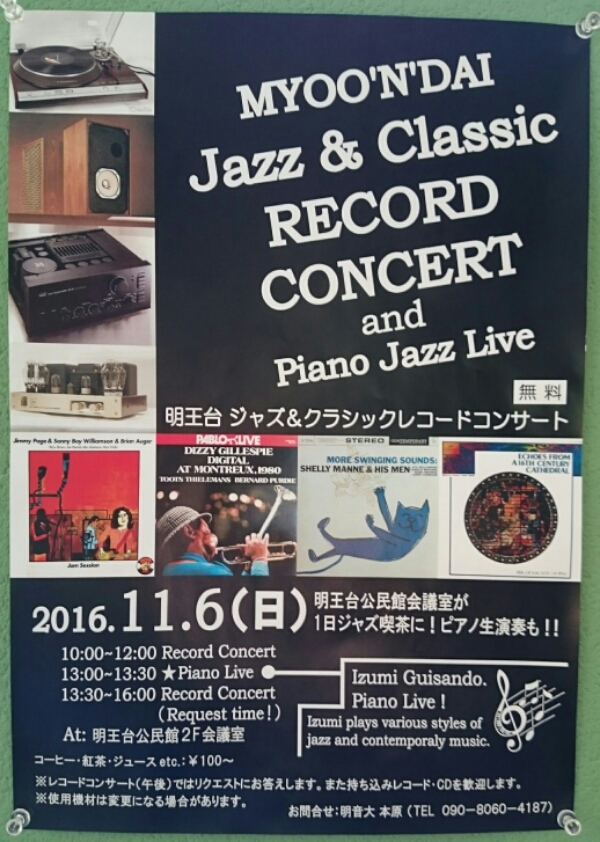 11月6日は、明王台公民館2F会議室が1日ジャズ喫茶になりました。