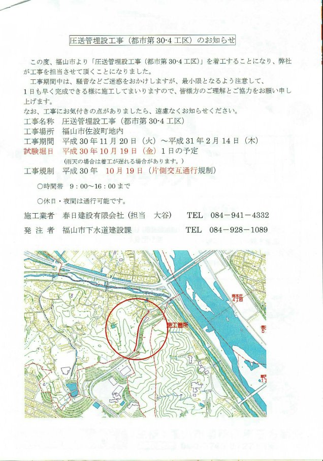 聖橋から登ってすぐの藤井塗装さん付近から、佐波城山公園入口付近まで、圧送管埋設工事が行われます。