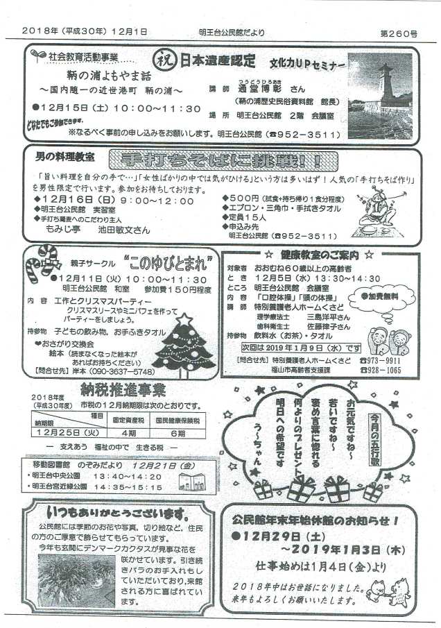 明王台公民館だより第260号が発行されました 2018年12月6日rengokaiyakuin 共有: クリックして X で共有 (新しいウィンドウで開きます) X Facebook で共有するにはクリックしてください (新しいウィンドウで開きます) Facebook いいね 読み込み中… 関連