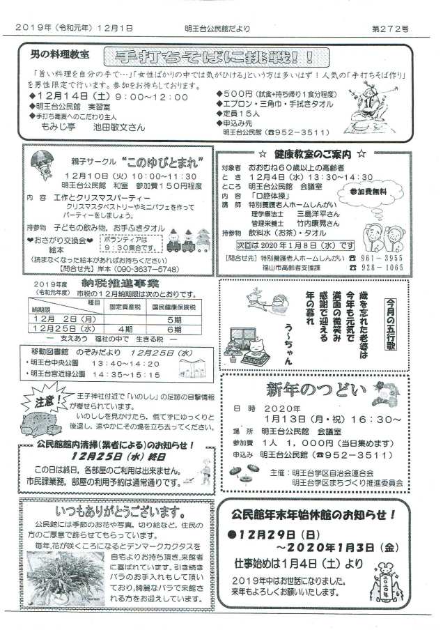 明王台公民館だより第272号が発行されました 2019年12月5日rengokaiyakuin 共有: クリックして X で共有 (新しいウィンドウで開きます) X Facebook で共有するにはクリックしてください (新しいウィンドウで開きます) Facebook いいね 読み込み中… 関連
