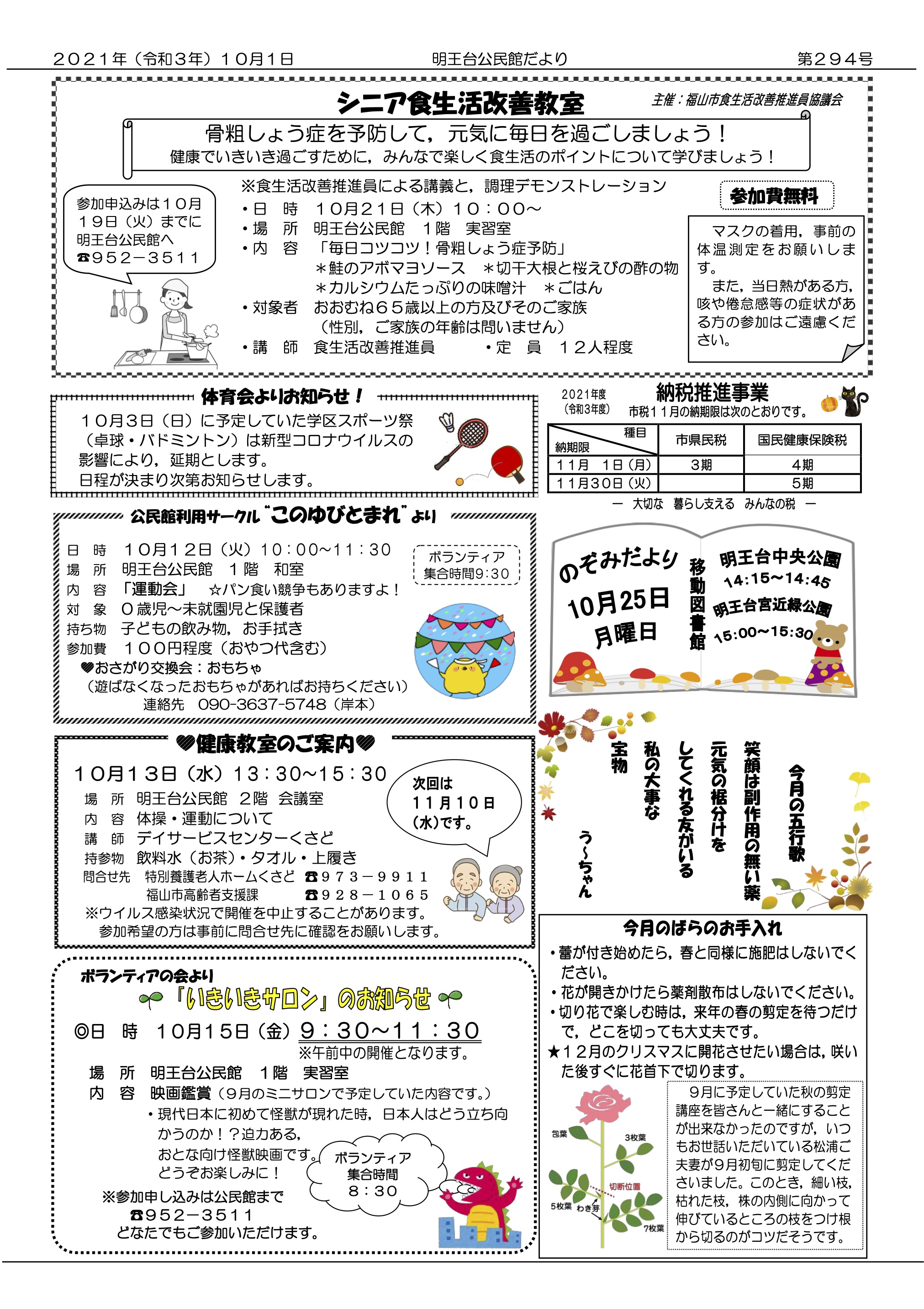 明王台公民館だより 第294号が発行されました 2021年10月2日2021年11月7日rengokaiyakuin 共有: クリックして X で共有 (新しいウィンドウで開きます) X Facebook で共有するにはクリックしてください (新しいウィンドウで開きます) Facebook いいね 読み込み中… 関連
