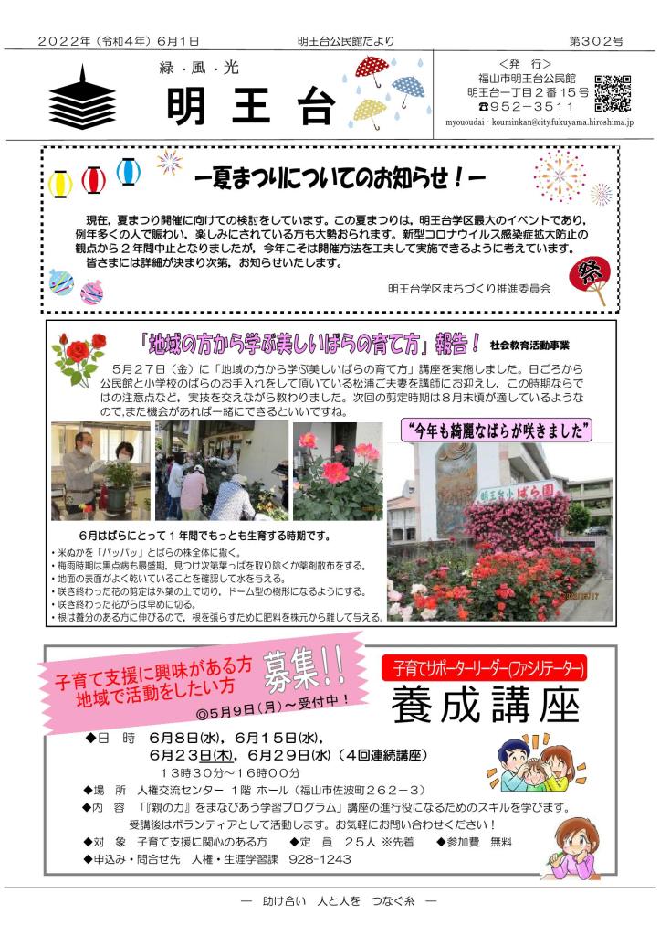 明王台公民館だより 第302号が発行されました 2022年6月1日2022年6月30日rengokaiyakuin 共有: クリックして X で共有 (新しいウィンドウで開きます) X Facebook で共有するにはクリックしてください (新しいウィンドウで開きます) Facebook いいね 読み込み中… 関連