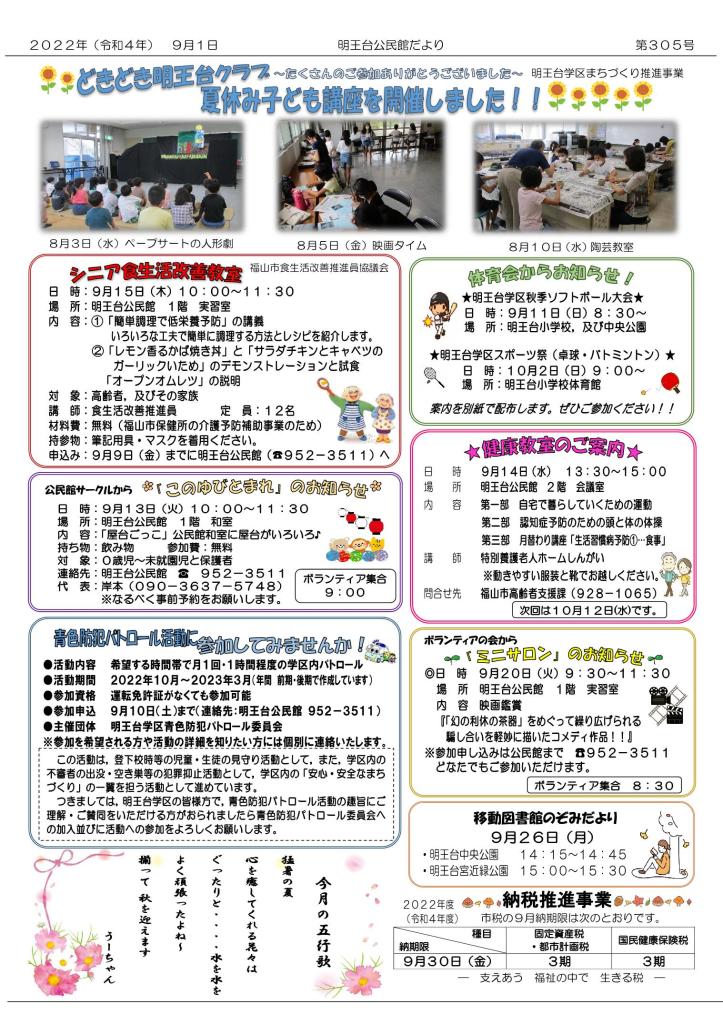 明王台公民館だより 第305号が発行されました 2022年9月1日2022年9月1日rengokaiyakuin 共有: クリックして X で共有 (新しいウィンドウで開きます) X Facebook で共有するにはクリックしてください (新しいウィンドウで開きます) Facebook いいね 読み込み中… 関連