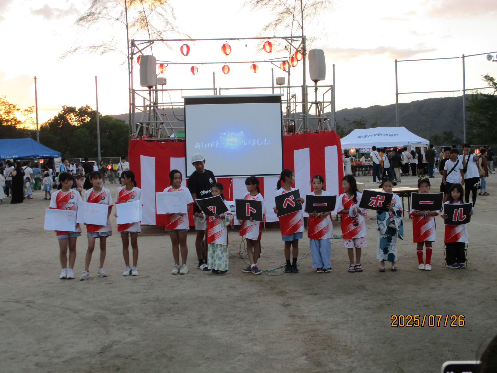 第34回明王台学区ふえあい夏まつりが開催されました 2025年7月31日takahiro1739 城北太鼓・明王台音頭・スポーツ活動紹介・ビンゴゲーム・花火と全てのプログラムが順調に行われました。 夕方とはいえ猛暑の中、飲食ブースやゲームブースも大勢の方で賑わっていました。 共有: クリックして X で共有 (新しいウィンドウで開きます) X Facebook で共有するにはクリックしてください (新しいウィンドウで開きます) Facebook いいね 読み込み中… 関連