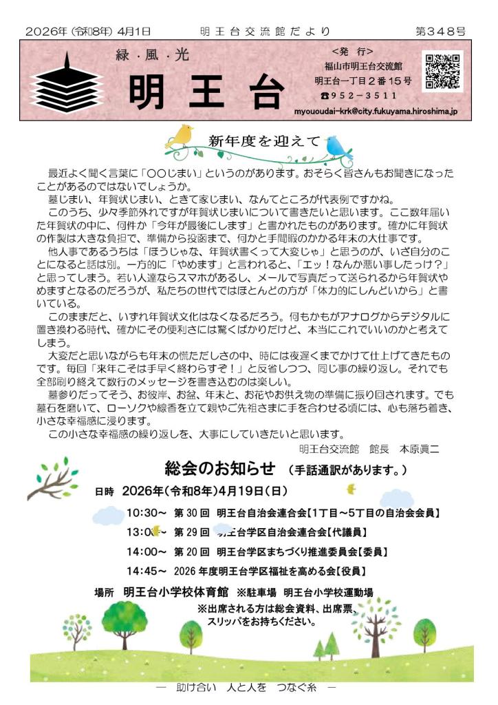 明王台交流館だより 第348号が発行されました 2026年4月2日takahiro1739 共有: X で共有 (新しいウィンドウで開きます) X Facebook で共有 (新しいウィンドウで開きます) Facebook いいね 読み込み中… 関連