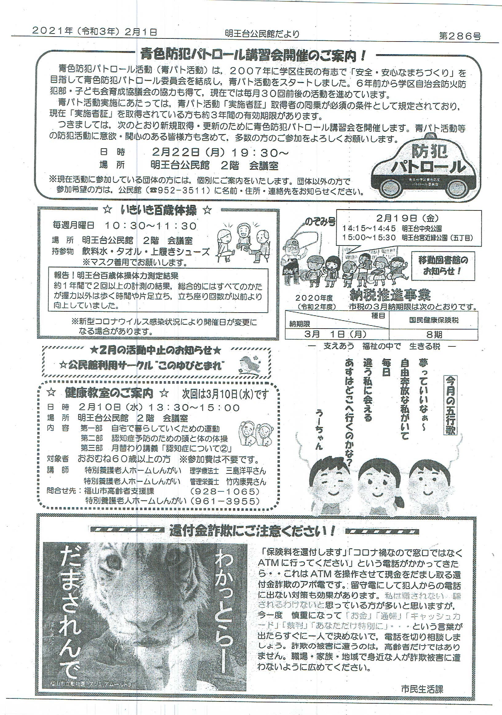 明王台公民館に預けていますので、落とし主の方、持ち主にお心当たりの方はご連絡をお願いします。