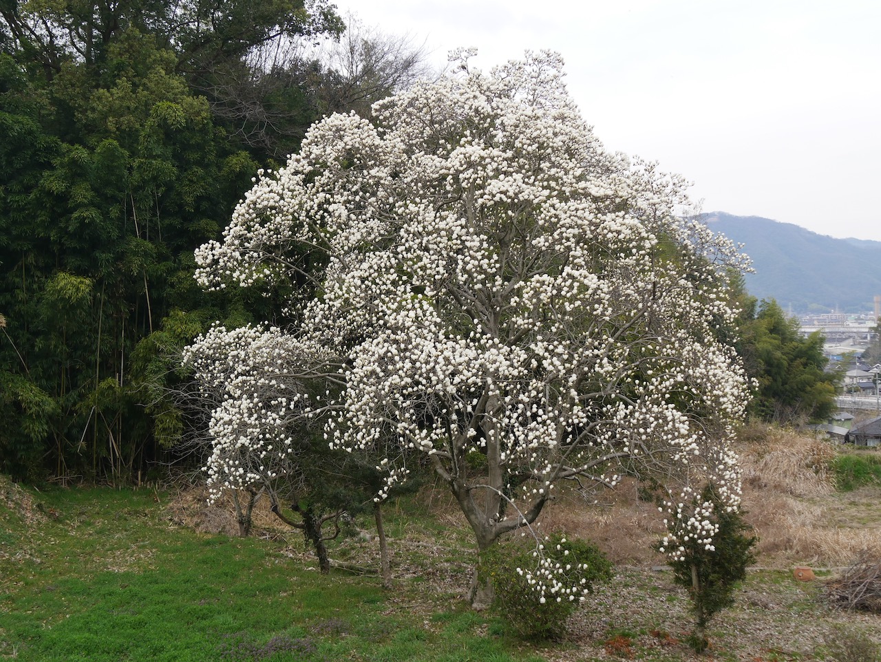 明王台入り口のハクモクレン