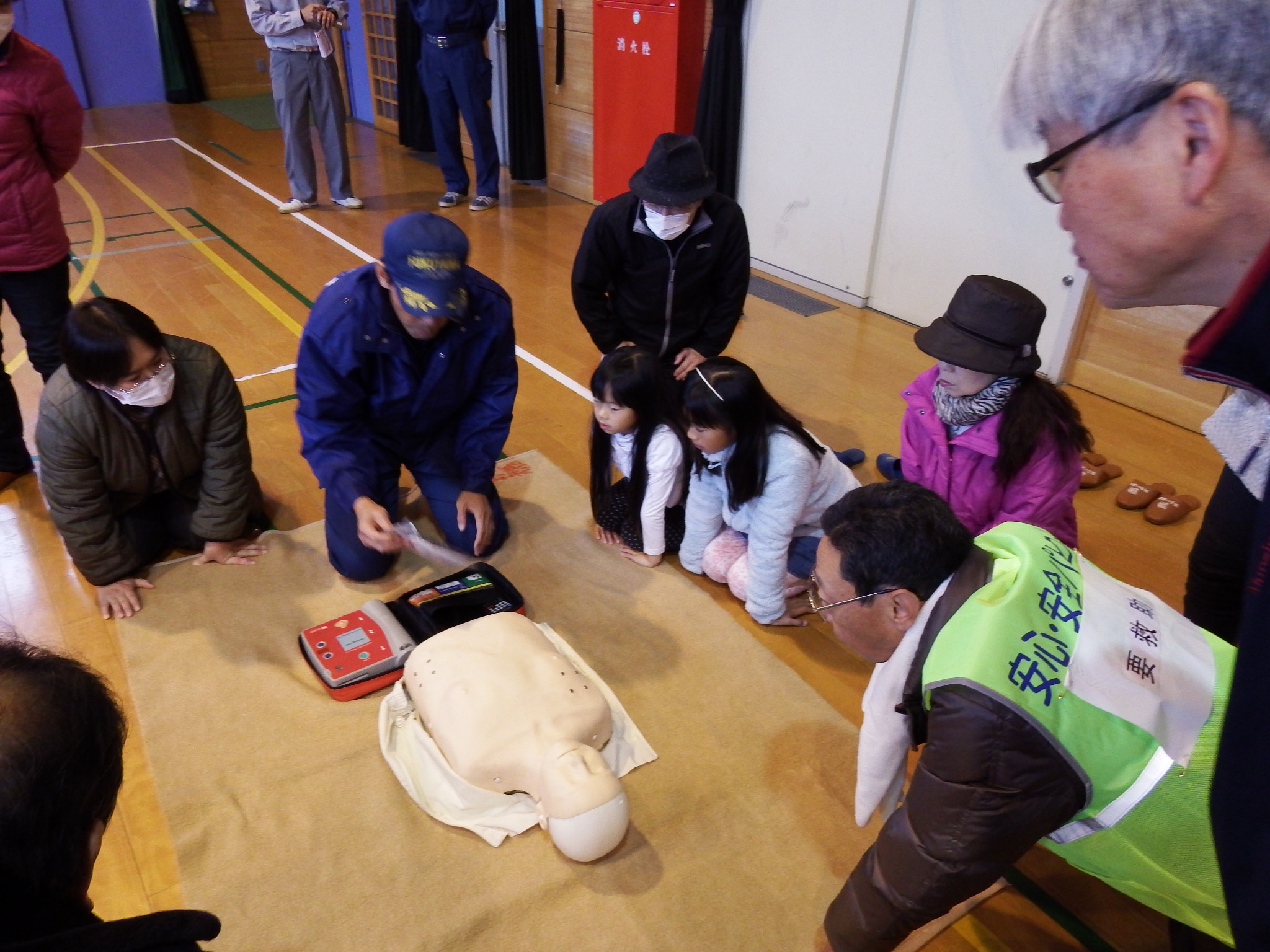 南消防署瀬戸出張所、消防団西分団のご協力のもと、簡易担架体験、心配蘇生法(CPR)体験、AED体験などを行いました。