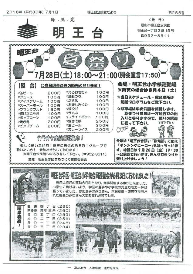 毎年恒例の明王台音頭、炭坑節に加えて、今年は「ダンシングヒーロー」も踊るそうです。小学校でも練習が始まっているということで、とても楽しみです。