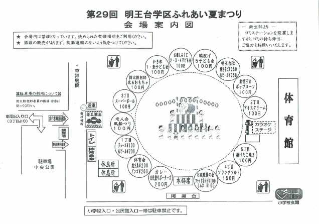 なお、片付けは明日朝の予定でしたが、台風接近のため、今晩の夏まつり終了後、ただちに行うことになりました。