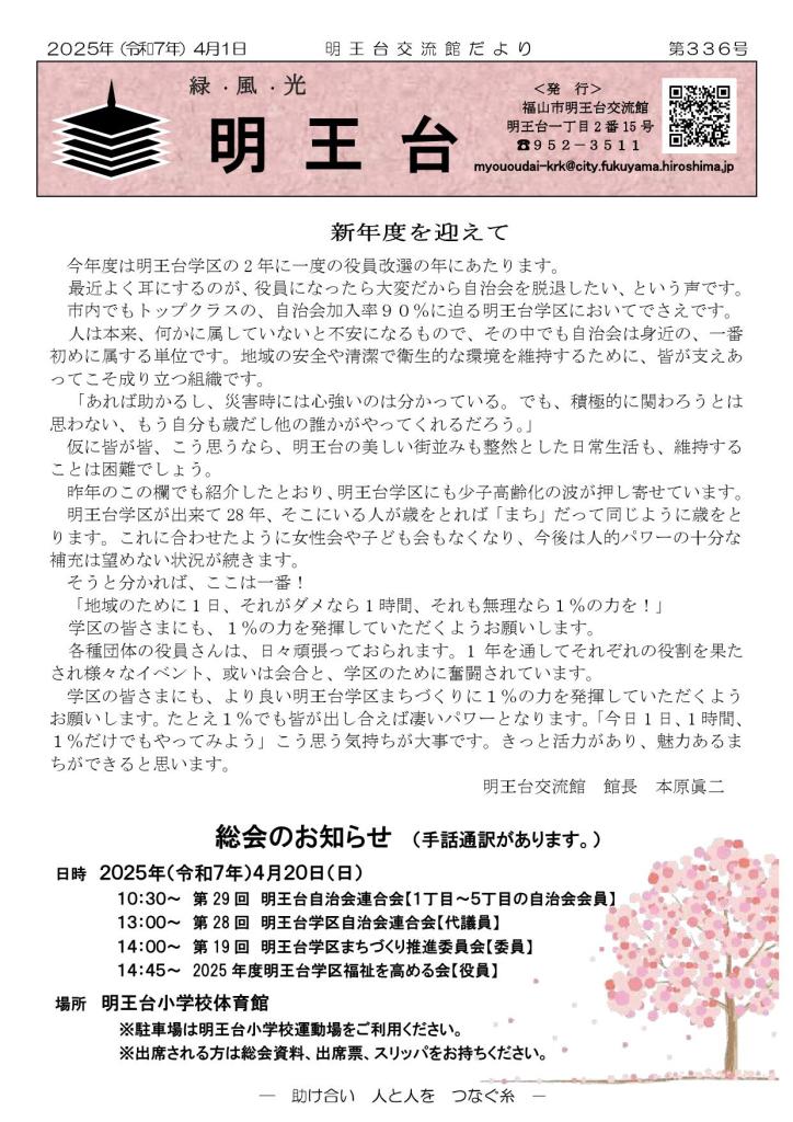 明王台交流館だより 第337号が発行されました 2025年4月30日2025年5月1日takahiro1739コメントを残す 共有: クリックして X で共有 (新しいウィンドウで開きます) X Facebook で共有するにはクリックしてください (新しいウィンドウで開きます) Facebook いいね 読み込み中…