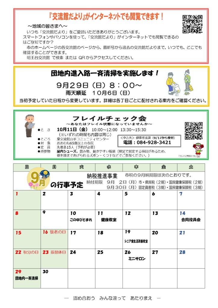 明王台交流館だより 第327号が発行されました 2024年6月30日takahiro1739コメントを残す 共有: クリックして X で共有 (新しいウィンドウで開きます) X Facebook で共有するにはクリックしてください (新しいウィンドウで開きます) Facebook いいね 読み込み中…