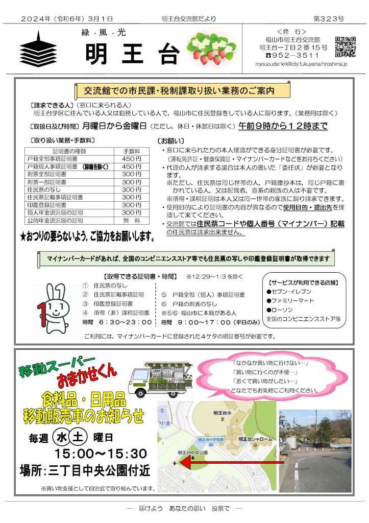 明王台交流館だより323号が発行されました 2024年2月29日2024年3月4日takahiro1739コメントを残す 共有: クリックして X で共有 (新しいウィンドウで開きます) X Facebook で共有するにはクリックしてください (新しいウィンドウで開きます) Facebook いいね 読み込み中…