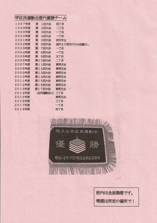 合同運動会プログラム 2019年5月30日2019年6月12日rengokaiyakuinコメントを残す 2019年度(令和元年度)明王台学区・明王台小学校合同運動会のプログラムです。 共有: クリックして X で共有 (新しいウィンドウで開きます) X Facebook で共有するにはクリックしてください (新しいウィンドウで開きます) Facebook いいね 読み込み中…