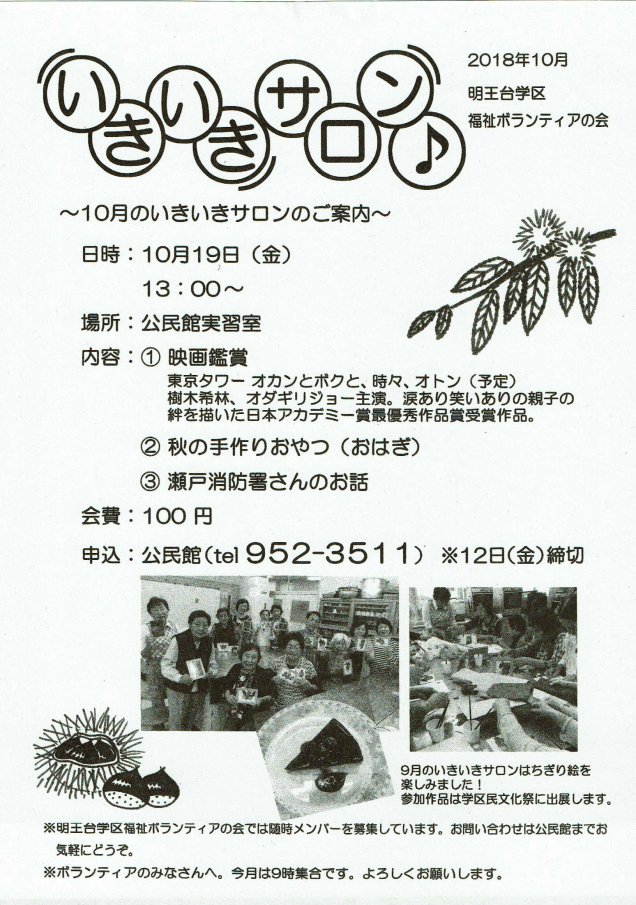 いきいきサロン 2018年10月17日rengokaiyakuinコメントを残す 10月19日(金)明王台公民館でいきいきサロンが開催されます。 詳しくは添付のお便りをご覧ください。 共有: クリックして X で共有 (新しいウィンドウで開きます) X Facebook で共有するにはクリックしてください (新しいウィンドウで開きます) Facebook いいね 読み込み中…