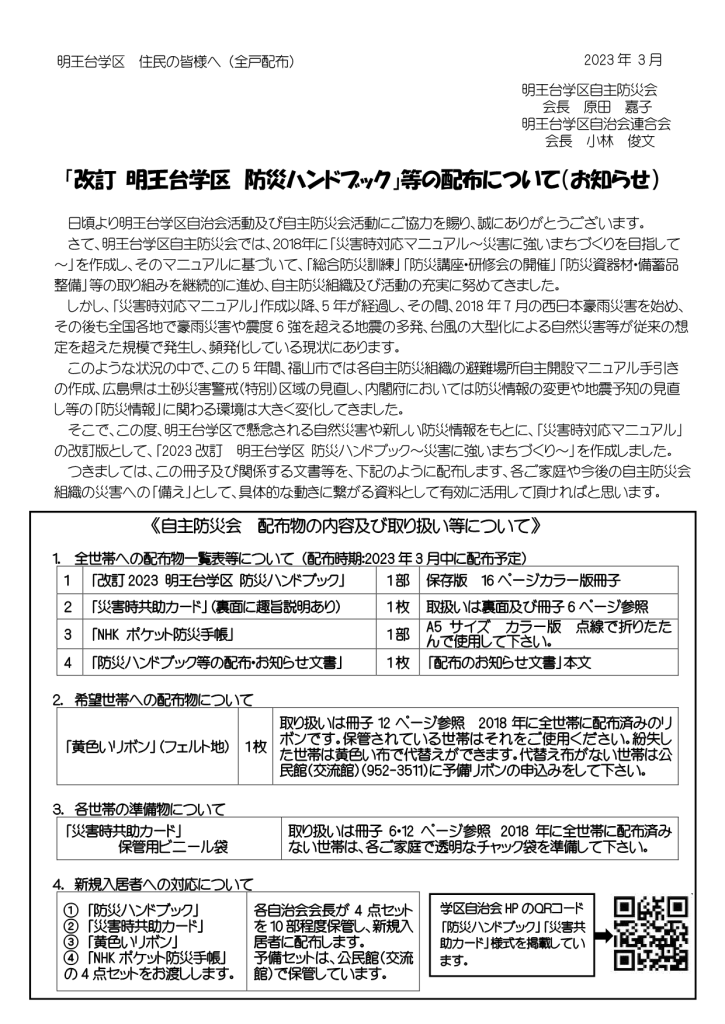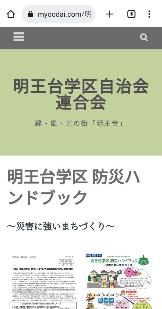各戸に配布されてから時間が経ってしまいましたが、「明王台学区 防災ハンドブック」を掲載しました。