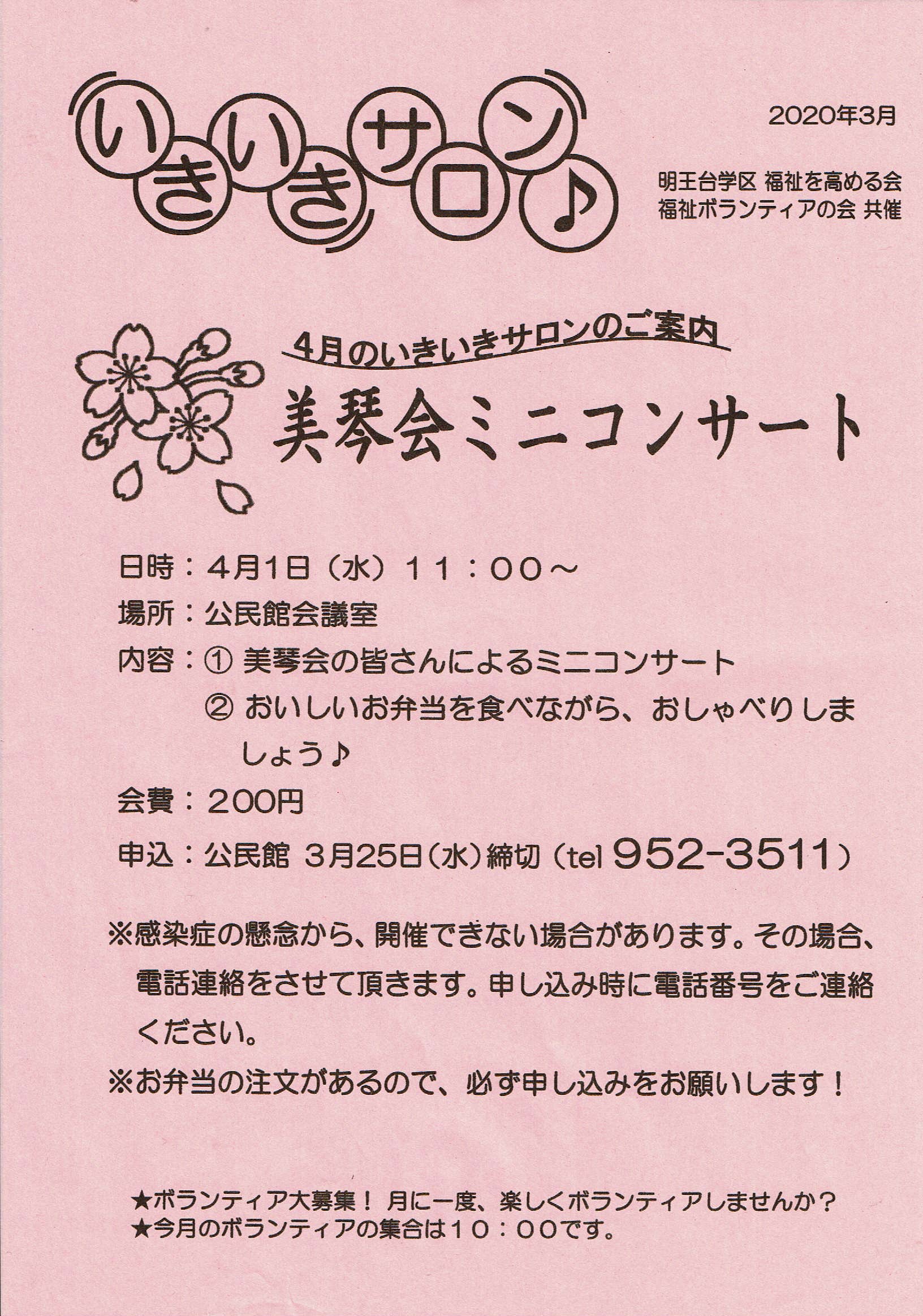4月のいきいきサロンは美琴会ミニコンサートです 画像 2020年3月3日2020年3月3日rengokaiyakuinコメントを残す 共有: クリックして X で共有 (新しいウィンドウで開きます) X Facebook で共有するにはクリックしてください (新しいウィンドウで開きます) Facebook いいね 読み込み中…